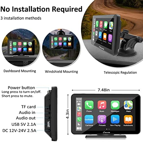 ????【Easy Installation】This carplay radio can use suction lock fixes securely to your dashboard or fixed on the windshield with strong suction cup, then adjust the height and length according to personal visual habits, the base supports 360 degree rotation, plug and play, so you can save a lot of installation costs.
