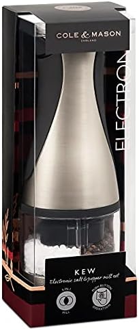Cole & Mason H946820 Kew Salt and Pepper Mill | Electronic | Brushed Chrome | 210mm | Single | Includes 1 x Electric Salt and Pepper Grinder | Lifetime Mechanism Guarantee