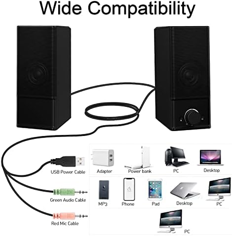 ♬[Compatible with Multiple Devices] Our computer speaker comes with 3.5mm audio interface which is compatible with desktops, computers, PCs, laptops, i Macs, Macs, tablets, phones, projectors, monitors, CD players, MP3 and so on.
