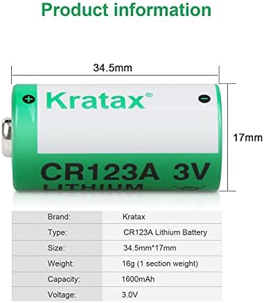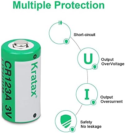 SAFE&RELIABLE PERFORMANCE】Kratax CR123A lithium batteries built-in short-circuit, over-current and over-voltage smart protections and deliver endurance and reliability in both high and low temperature operations.Kratax lithium CR123A 3V batteries offers a shelf life of up to 10 years without any memory effect;thanks to its low self-discharge rate (≤1% in normal storage)