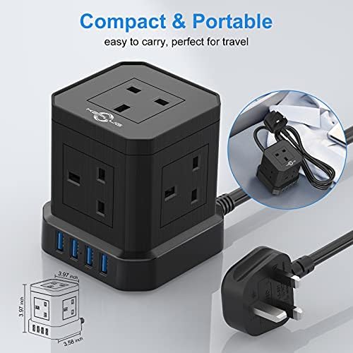 ????Compact & Space Saving Cube Power Extension Design – Innovative cube design makes 5 power outlets in different directions no need to worry about blocking each other. Its mini size takes up much little space than traditional power strip, It can fit well in your luggage. Also 5 plug sockets and 4 USB ports should be more than enough for most desk or work from home setups.
