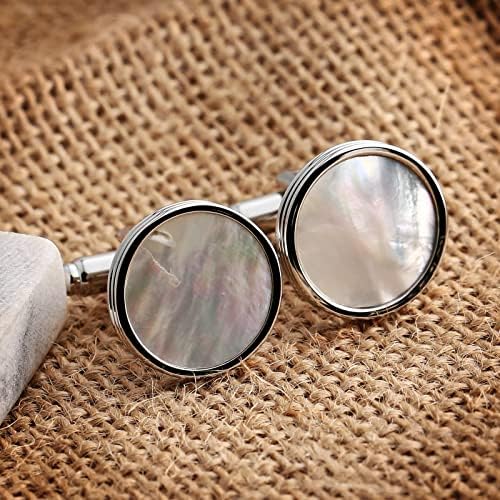 Cuff Links Mens, Shell Round Mens Cufflinks Groomsmen Silver Stainless Steel Cuff Links Men Suit Accessories