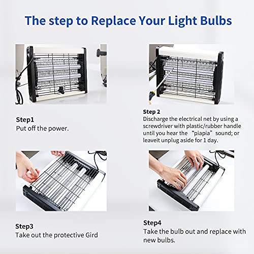 GUARANTEE — Protect your family and customers from annoying and disease-causing flying insects such as mosquitoes, moths. Reminder: Due to the different types of lighting, the effect of killing flies is average, but the effect of killing mosquitoes is very good.We offer a 90-day guarantee from the date of purchase. Our goal is to achieve 100% customer satisfaction. If you have any questions about our Electronic Fly Killer, we will offer a refund or exchange.