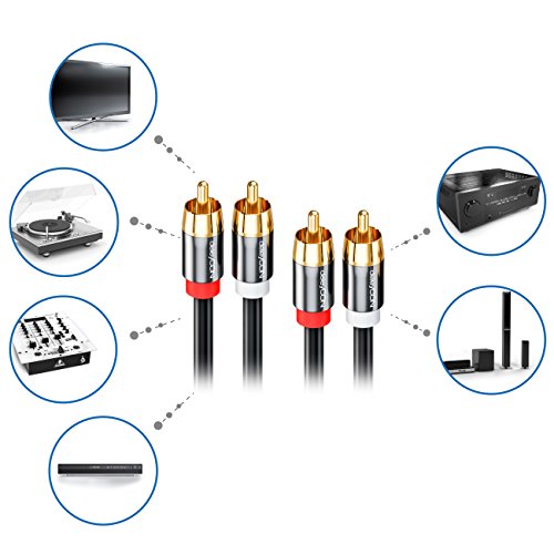 deleyCON 0.5m (1.64 ft.) Cinch Cable Stereo Audio Cinch RCA Cable 2x Cinch Plugs to 2x Cinch Plugs Hifi Systems Hifi Receivers Home Cinema Blu Ray Players – Black