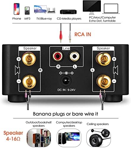 As a digital power amplifier & music player, it supports RCA/AUX/USB/BT 5.0/TF Card inputs, almost compatible with all home audio device such as phone, tablet, computer, TV, set-box, CD player etc. U-disk and TF card support WAV, APE, FLAC lossless formats .