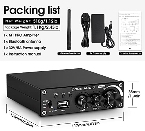 Douk Audio 320W Bluetooth 5.0 Hi-Fi Amplifier 2.0 Channel Stereo Receiver USB Flash Drive Player Mini Class D Integrated Amp for Home Passive Speakers Powered Subwoofer (M1 PRO)