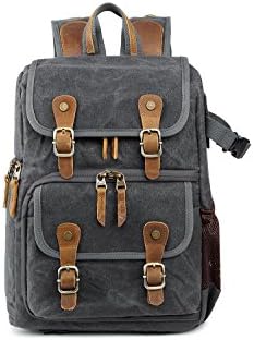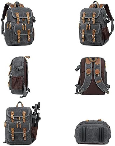 DSLR Camera Canvas Backpack Large Capacity Front Open Waterproof Anti-shock SLR/ DSLR Camera Rucksack Camera Travel Bag Professional Camera Bag Gray