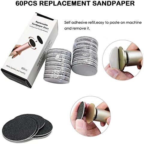 REPLACEABLE SANDPAPER DISCS: This electric foot file includes 60pcs self-adhesive replacement pads, one person one sanding pad, easy to remove and paste.