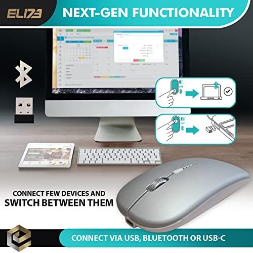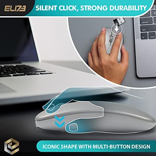 ELI73 OPRO Wireless Mouse – USB Wireless Receiver & Bluetooth, Rechargeable Battery, 3200 DPI – High Precision, Silent Click, Fast Scrolling, Ergonomic, Compatible with Laptop, PC, Mac, iPad – Silver