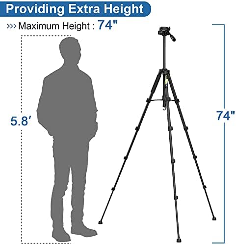 Endurax 74 Camera Tripod for Canon Nikon Sony, DSLR Tripod Stand Tall with Phone Mount and Carry Bag