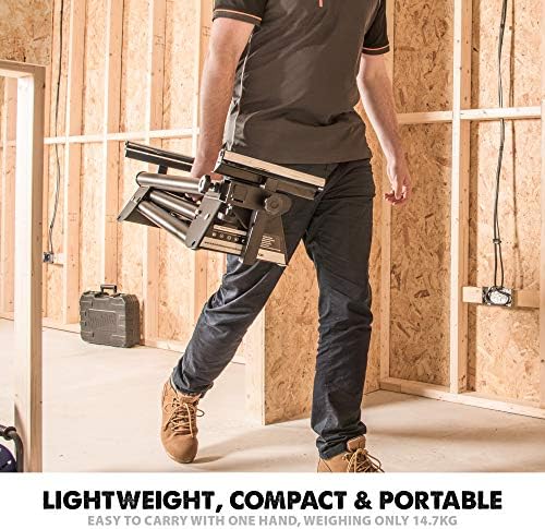 Evolution Power Tools EVOMS1 Compact Folding Mitre Saw Stand with Extending Support Arms and Quick Release Clamps, Universal Fits Evolution, Makita, DeWalt, Bosch, Ryobi, Einhell and Metabo