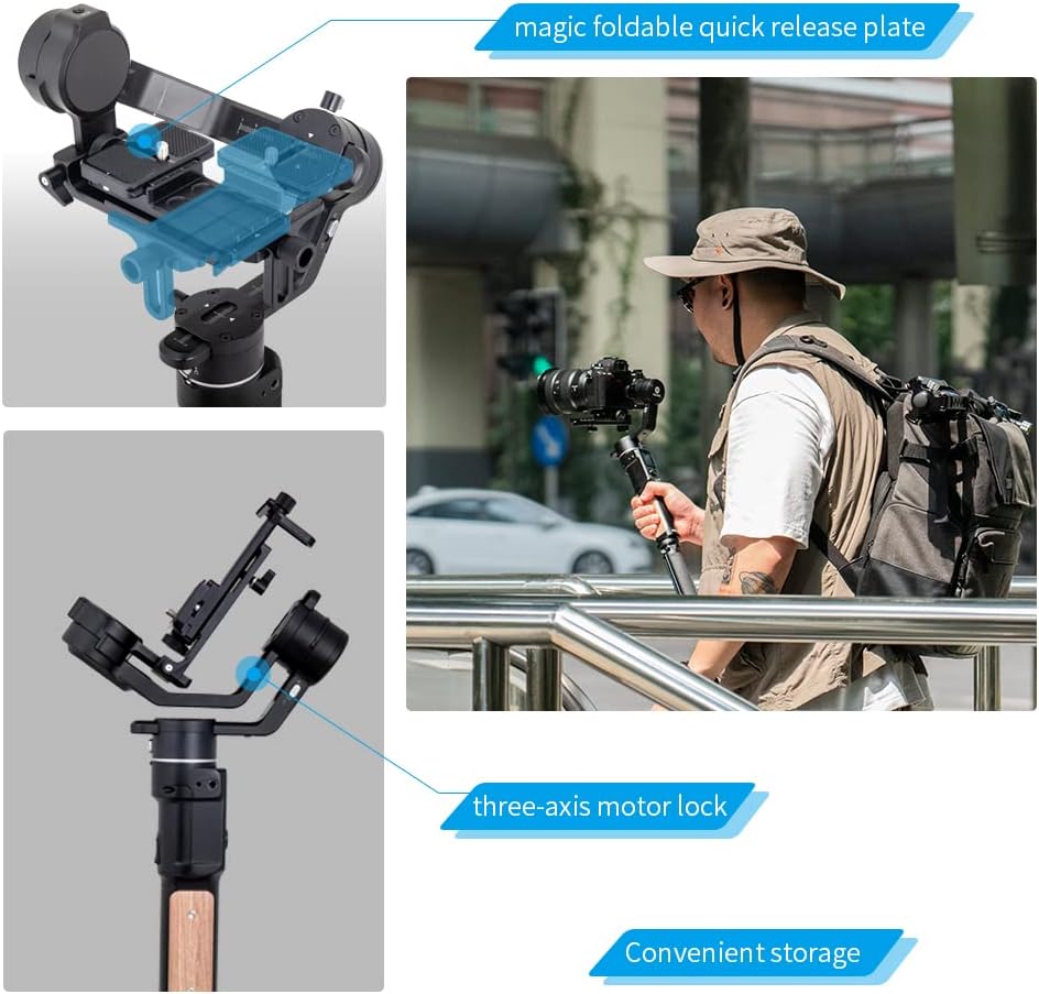 【LIGHTWEIGHT】Compact Design with 4.85 lb Payload.built-in Fast-Charge battery and is rechargeable in approximately 1.5 hours using an 18W fast charger, the battery lasts up to 7-12 hours.Ideal gimbal for Mirrorless Camera and DSLR Camera.