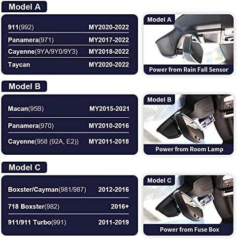 【Suitable for Porsche-Model A】Dedicated integrated dash cam for Porsche 911(992), Cayenne (9YA 9Y0 9Y3), Panamera(971) and Taycan, exclusively by Fitcamx. Please contact us and send pictures of the rear view mirror if ordered.