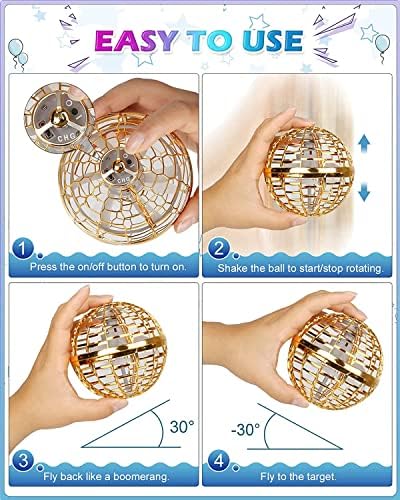 Flying Ball Toy, Hand Controlled Mini Drone,Flying Spinner with 360° Rotating LED Lights for Kids Adults Indoor Outdoor(Gold)