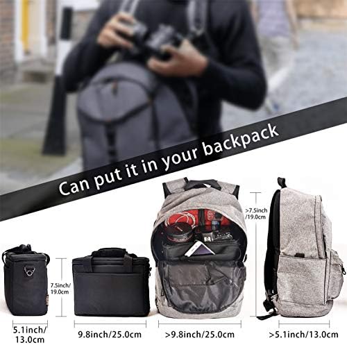 【Premium Material】Made from high density nylon fabric, anti-shock composite and soft padded inner lining, protecting your camera, lenses and accessories from shocking and scratching.