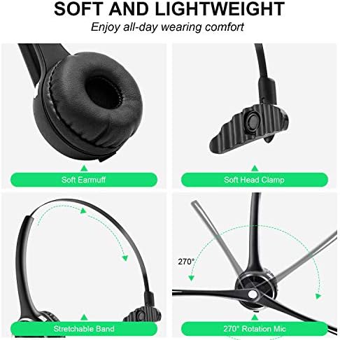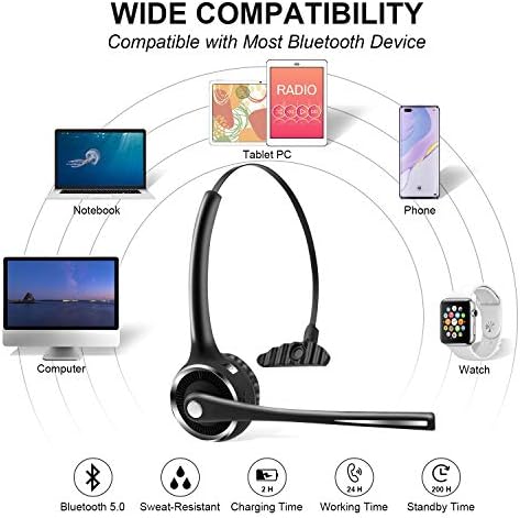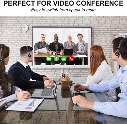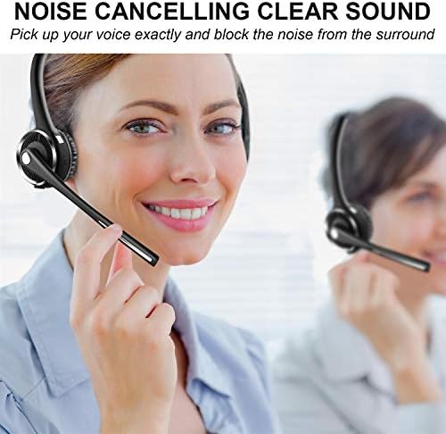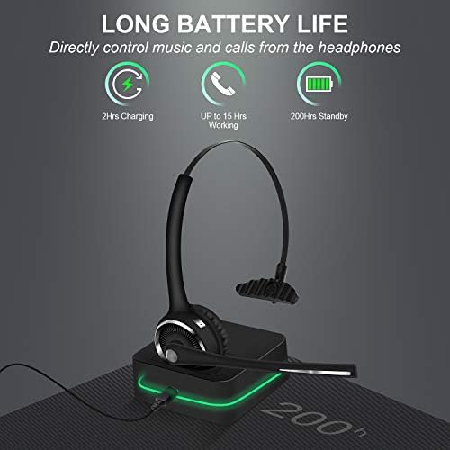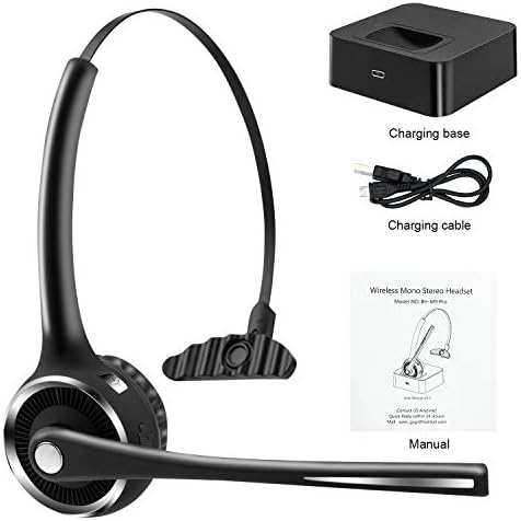 Friencity Bluetooth Headset with Microphone, Wireless Office Headphones w/Noise Cancelling for PC Skype VOIP, Call Center, Trucker Driver Headset w/Charging Base, Mute Button, 15hrs Talking Time