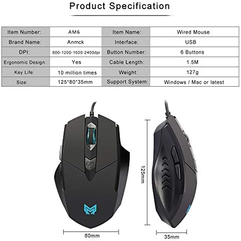✅【Comfortable to Hold】Anmck AM6 wired gaming mouse adopt an ergonomic claw grip design, Moderate size, not too big or too small to hold, frosted shape, comfortable to hold, streamline design offers your hand maximum support for lasting comfort.