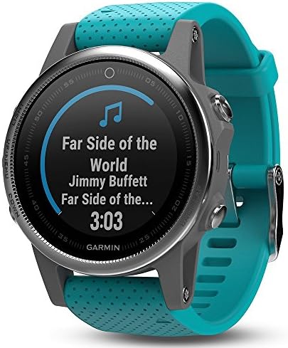 Garmin 010-01685-01 Fenix 5S Multisport GPS Watch with Outdoor Navigation and Wrist-Based Heart Rate, Silver with Turquoise Band (Renewed)