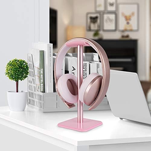 Geekria Aluminum Headphone Stand, Gaming Headset Holder, Earphones Display Hanger, Desk Stand with Non-Slip Silicone – Pink