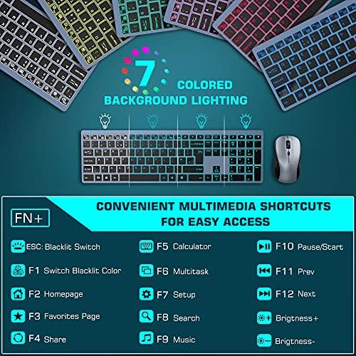 Rechargeable lithium battery with an industry-high capacity of 3200mA, ensures the keyboard with continuous 800 working hours/standby for 200 days.(Please use the charging plug to charge the keyboard. If you directly use the charging cable to connect to the computer, it will take too long time or even not work.)The wireless keyboard has 7-color LED backlight,3 levels of brightness, which can be adjusted freely according to your preferences.