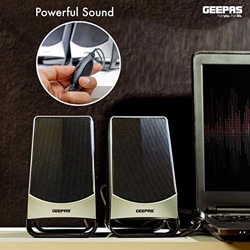 Geepas 2.0 Computer Speaker – PC Speakers/Multimedia Speakers for Laptops & Computers – 1.3M Cable, USB Connection Type & 3.5mm Jack Stereo – 2 Years Warranty
