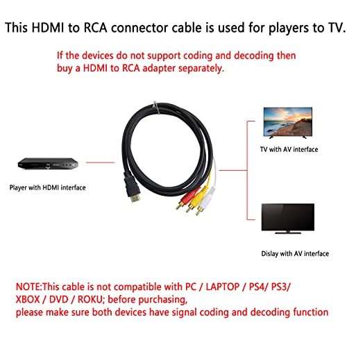 GELRHONR HDMI to RCA Cable,One-Way Transmission from HDMI to 3-RCA Video Audio AV Component Adapter Cable For HDTV-5FT/1.5M