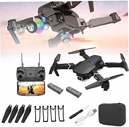 GPS Drone E88 Pro for Adults 4K Pro Dual Camera Foldable Live Video Drone RC Quadcopter Aircrafts with 2Battery Black Safety Products