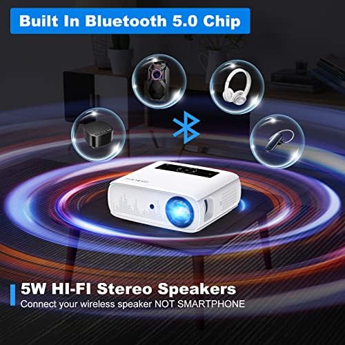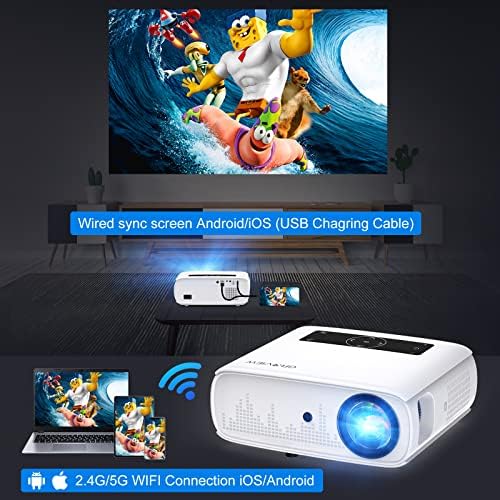 【Upgraded WiFi & USB Connection Tech】WiFi projector supports both wireless connection by 2.4G/5G dual-band Wi-Fi in IOS Smartphones/Android and wired connection by USB cable(only iPhone). With screen mirroring/wireless projection function, you can easily share movies, videos, games, photos and apps from your phones or tablets devices to the projector. No need for any wifi dongle, HDMI adapter or cable, which more convenient and easier.