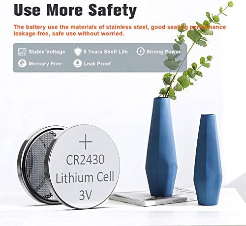 🗸 5 YEARS SHELF LIFE – Our CR2430 3V lithium coin cell offers long-lasting life! It is designed to not leak, corrode, or fail. It is reliable and designed to service your devices for at least two years. Get more battery life and value for money with our quality CR2430 3 Volt Lithium Batteries!