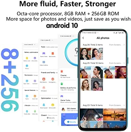 【 8GB RAM 256 ROM ROM】This smartphone used the proccessor Octa-core 8GB RAM, provide you with powerful performance and maximum operating speed. 256GB ROM allows you to store more pictures, videos and files.