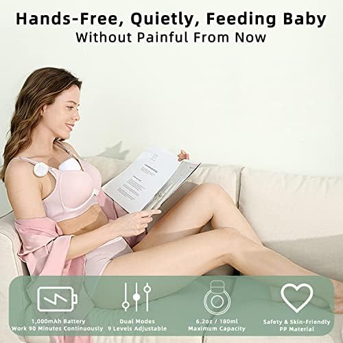 Hands-Free Wearable Breast Pump Electrical with 9 Levels Adjustable Dual Modes of Massage & Pumping, 24mm Flange, Quiet & Painless, Work 90 Minutes for Colostrum Breastfeeding Silicone Baby Essentials