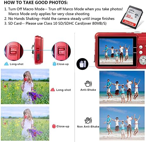 ★ 【Using Tips】 Please format the card after receiving the digital camera and you can start taking pictures. Purchase a Sandisk Class 10 SD / SDHC card 32GB or less (card not included) for better use. Please update your computer’s USB driver if uploading images failed or use an SD / SDHC card reader. Always switch off the micro mode!