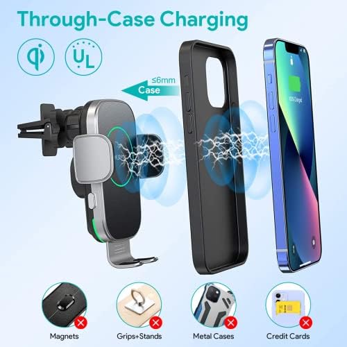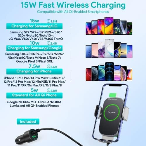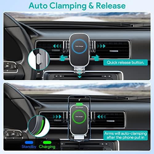 Hinyx Wireless Car Charger – 15W Car Phone Holder Wireless Charger Mount Automatic Sensor Car Charger Vent for iPhone 13 Pro Max/12 Mini /11/11 Pro Max/XS Max/X/XR/8, Compatible for S21/S20/S10/Note10