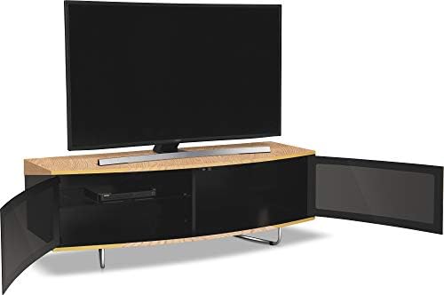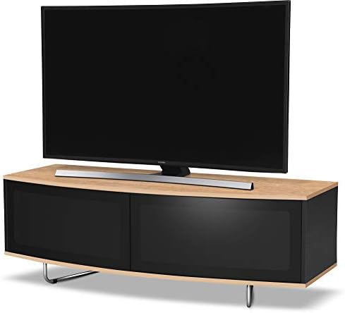 Homeology Caru Gloss Black and Gloss Oak Beam-Thru Remote Friendly Super-Contemporary”D” Shape Design 32″-65″ LED/OLED/LCD TV Cabinet