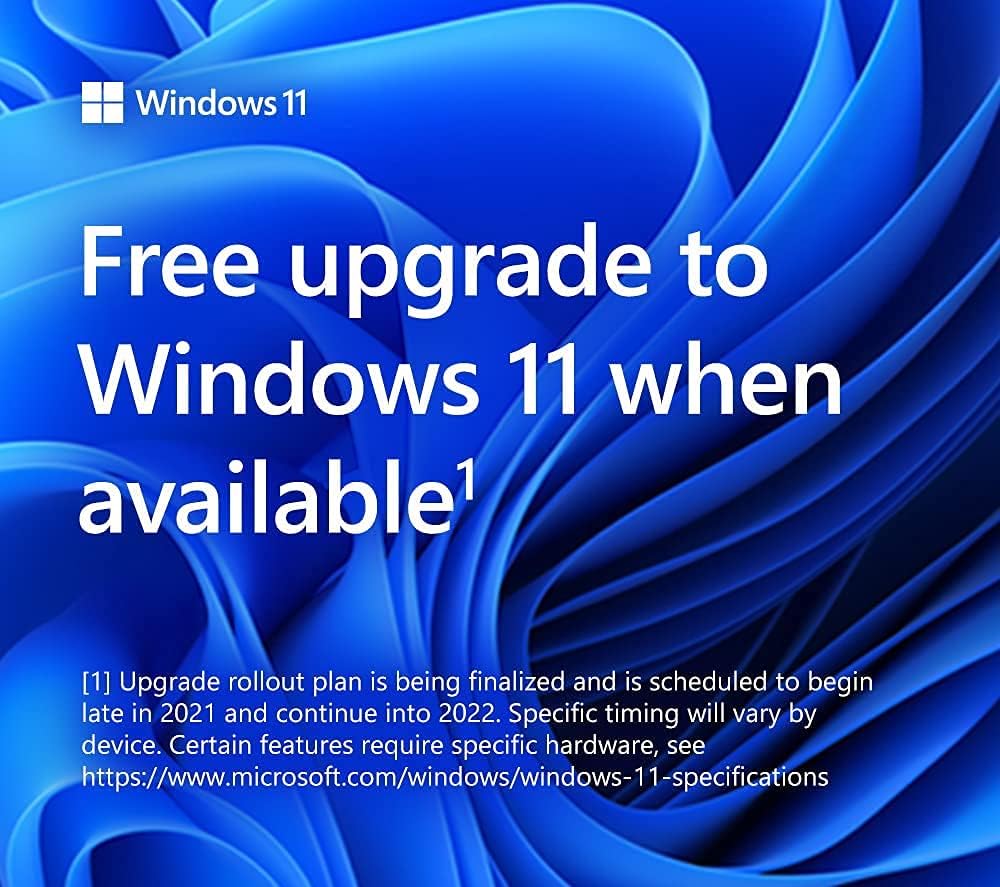 FREE UPGRADE TO WINDOWS 11 WHEN AVAILABLE. The upgrade rollout plan for Windows 11 is being finalised and is scheduled to begin late in 2021 and continue in 2022. Specific timing will vary by device and certain features require specific hardware