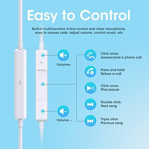 in Ear Earbuds Headphones Wired Earphones with Microphone and Volume/Calls/Music in-Line Control, Compatible with Smartphones, Tablets, PC, Computer and Other Devices with 3.5mm Headphone Jack, White