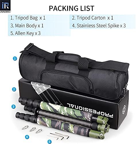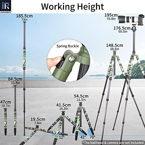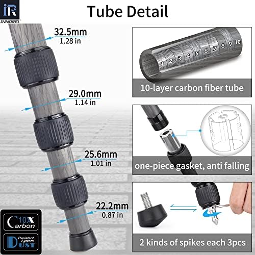 INNOREL RT85CG Carbon Fiber Tripod 177cm Professional 2-in-1 Travel Tripod Monopod Max Load 25kg Max Tube 32mm Heavy Duty Stand Support with Center Column for Digital DSLR Camera(Tripod Only)