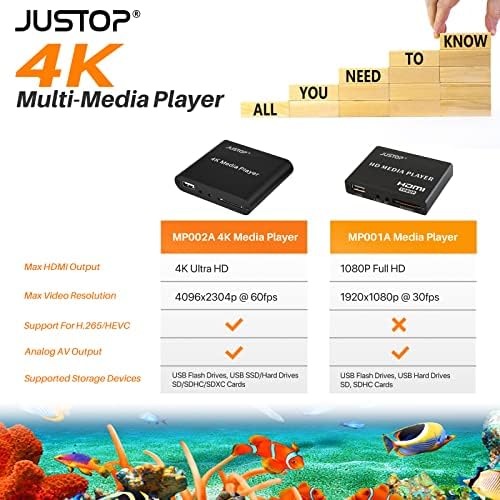 JUSTOP 4K Media Player, Mini 4K 1080P Ultra HD HDMI Digital Media Player For Playing MP4/MKV/RM From HDD USB Drives and SD Cards