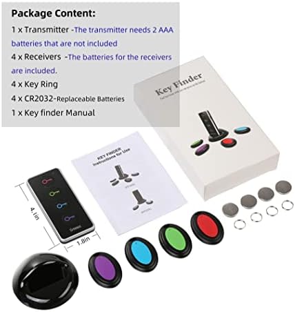 Key Finder Remote,Wireless RF Item Locator,Greeous item Finder with Flashlight,80db Sound Loud Tracker for Key,Pet,Luggage,Wallet,Cellphone,98 ft Working range,1 Remote,4 Receivers