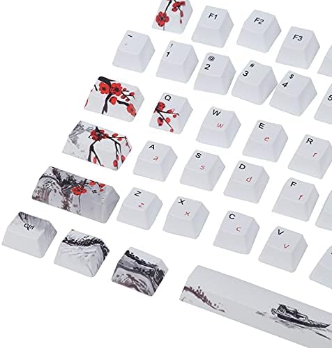 Keycaps, Chinese Style Theme Dye‑Sublimation Technology PBT Keycaps Super Thick Wearable 110 Key 5-Sided Sublimation Process Keyboard Caps with Key Puller for 61/87/104/108‑Key Keyboards