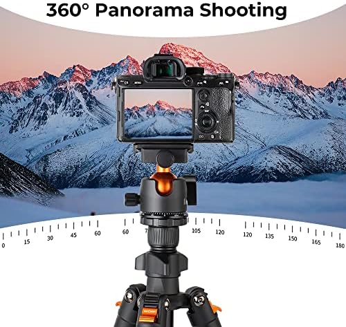 K&F Concept 64 inch/163cm Camera Tripod,Lightweight Aluminum Travel Outdoor Tripod with Metal Ball Head Load Capacity 8kg/17.6lbs,Quick Release Plate, for DSLR Cameras K234A0+BH-28L