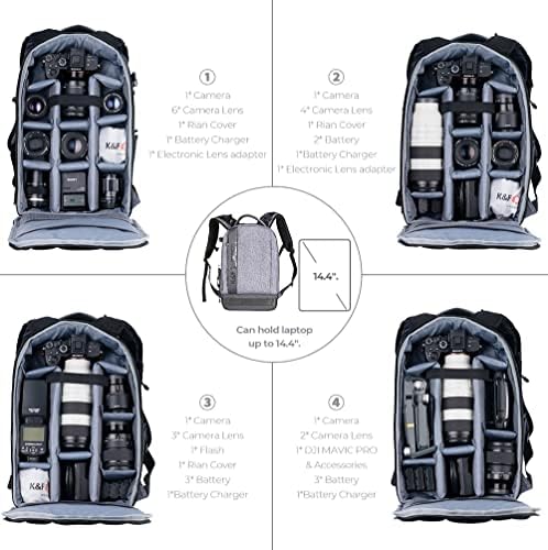 【LARGE CAPACITY】: 2 Cameras ( Canon, Nikon, Sony, Olympus, Pentax and other DSLR ) + 5 Lenses + 13.3” laptop + flashes and other accessories to suit your needs.