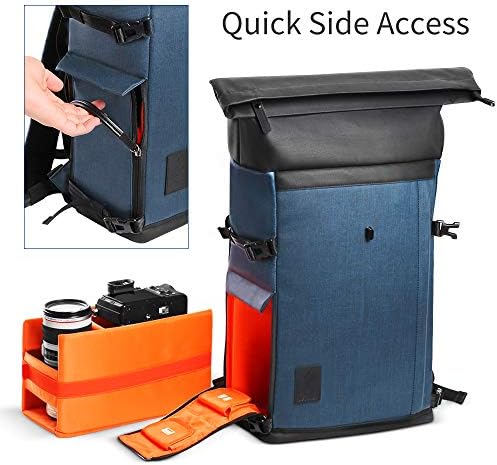 📸【Multifunctional and Easy to Carry】 A good companion for outdoors photography. Soft clothes and shoes can be stored in the upper compartment of the roll top camera bag. Not only an organized camera backpack, it also can be carried as a travel bag, stably inserted from back to suit case, convenient in your business and long-term trips.
