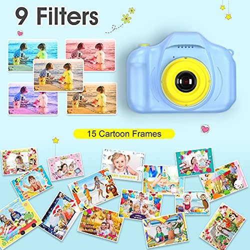 🍭[Cute camera toy] This kid’s camera video recorder has 15 photo stickers and 9 filter effects, providing more funny pictures and video effects. The portable sports camera is light and convenient, and the camera with the waterproof case is waterproof and resistant to fall, which is convenient for children to carry with them.