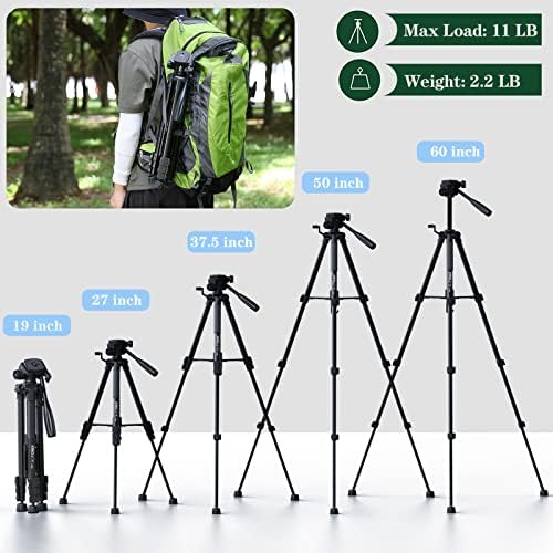 KINGJOY 60 inch Camera Tripod for Canon Nikon Lightweight Aluminum Travel DSLR Phone Tripod with 2 in 1 Phone Tablet Holder and Carry Bag