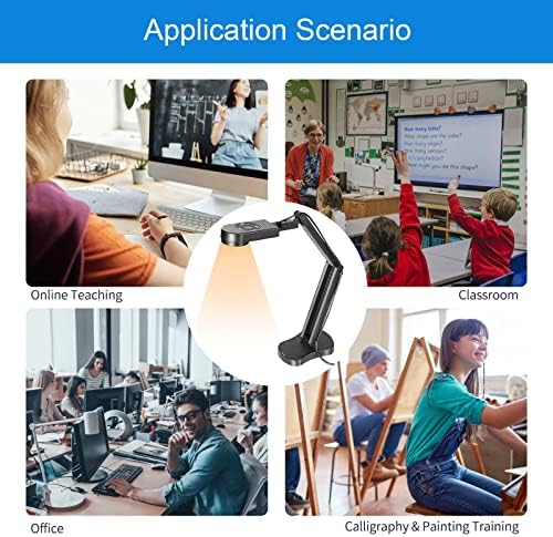 🎥Foldable visualiser for teaching: embedded design, occupies a small space after folding, easy to carry; Multi-joint support with multi-angle rotate freely usb camera can capture 2D and 3D objects better and shooting high-definition images and videos. Maximum covering area: 16.5″ x 116″ in (A3 paper)