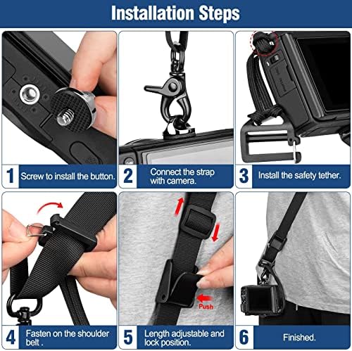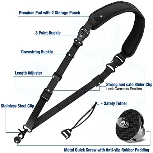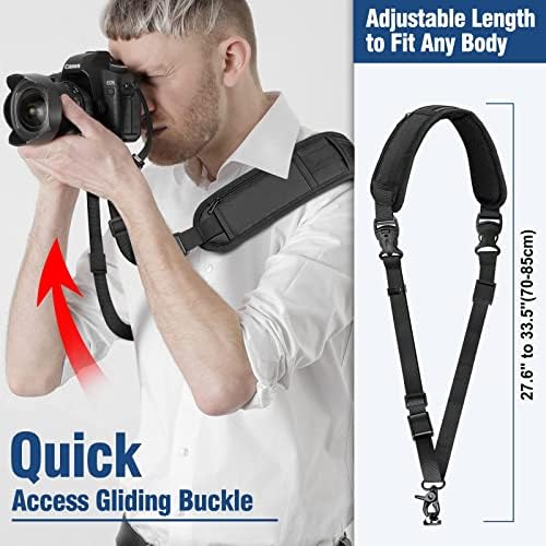 ✔【QUICK RELEASE CAMERA STRAP】— Shoulder camera strap padded is made from nylon that is softer, breathable, it helps release the pressure of your shoulder and free your hands. Adjustment strap in nylon is very durable and not easy to disconnect. Comes with an safety tether that double protect your precious camera.