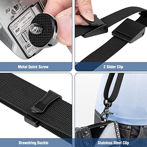 ✔【REINFORCED MATERIALS】— With the durable stainless steel locker and the metal quick screw holder, you can securely fasten your camera onto the strap. The screw also features a protective anti-slip rubber pad to prevent slippage or scratches. Comes with 2 slider clip that keeps your camera no longer sways.