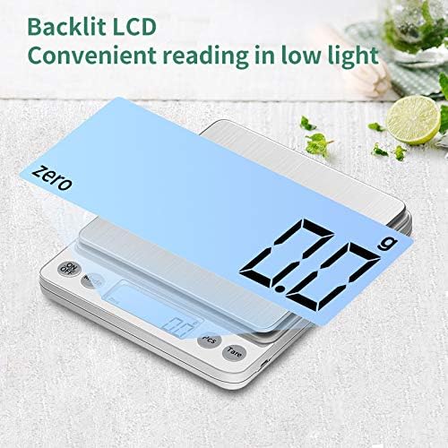 【PORTABLE】: Small size, the size of the product is only 4 inx 5 in x 0.75 in, which is convenient to carry, occupies small space during use, and is convenient for storage. Electronic scales can be used to weigh vegetables, fruits, baked ingredients, daily use household articles and pet foods. The digital kitchen scale has double trays that can be replaced depending on the different objects