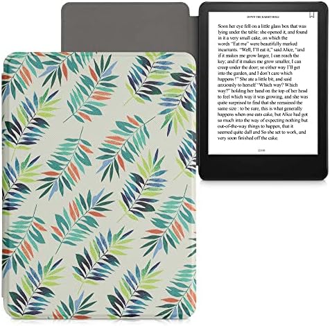 kwmobile Case Compatible with Amazon Kindle Paperwhite (11. Gen – 2021) – Case PU e-Reader Cover – Green Leafs Green/White/Orange